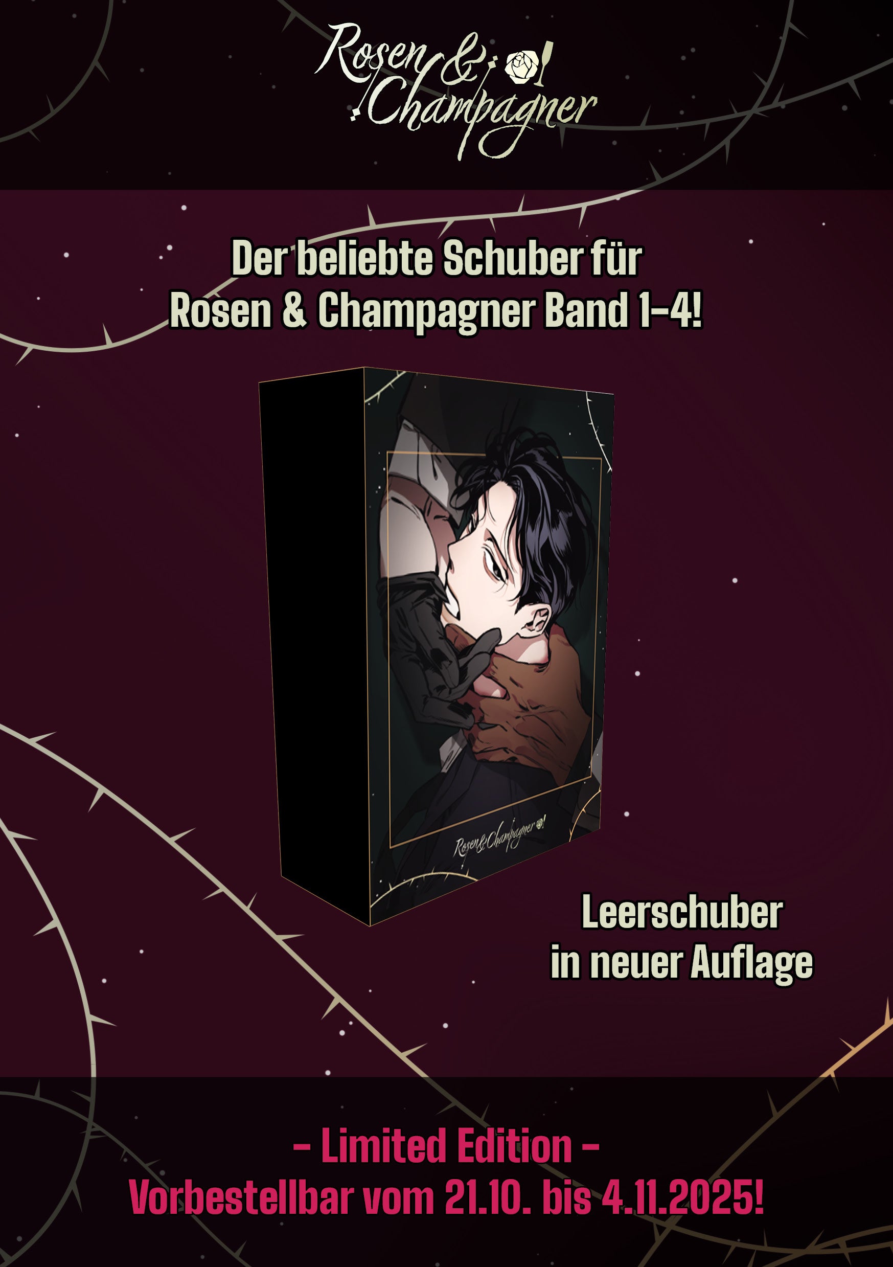 Der Schuber bietet Platz für Band 1-4 von der Hauptreihe von Rosen & Champagner. Die Neuauflage erscheint ohne Bücher oder Acrylaufsteller.